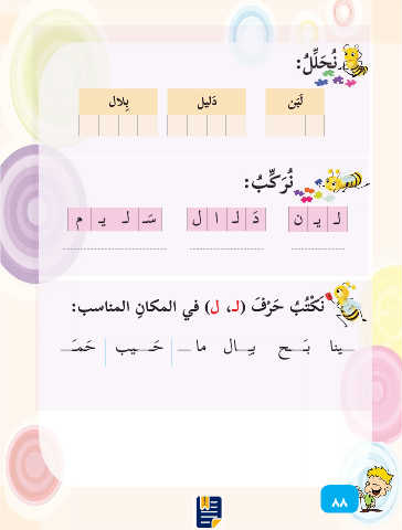 نُ َح ِّل ُل: َل َبن َدليل ِبلال نُ َر ِّك ُب: لـ يـ ن َد لـ ا ل َسـ لـ يـ م َن ْك ُت ُب َح ْر َف )لـ ،ل( في المكا ِن المناسب: ــــينا ب َــــــح بـِــــال ما ــــ َحــــــيب َحم َـــــ ٨٨
