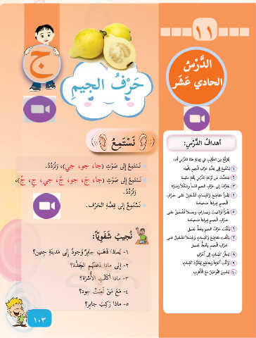 َن ْس َت ِم ُع إِلى ِق َّص ِة ال َح ْرف. َ ٣ي َت َع َّر َف إلى َح ْر ِف الجي ِم ا ْسماً و َش ْكلاً َو َص ْوتا.