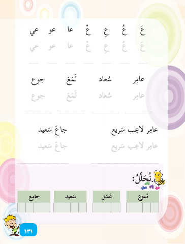 َع ُع ِع ْع عا عو عي َع ُع ِع ْع عا عو عي عا ِمر ُسعاد لَ َم َع جوع عا ِمر ُسعاد لَ َم َع جوع جا َع َسعيد عا ِمر لا ِعب َسريع جا َع َسعيد عا ِمر لا ِعب َسريع نُ َح ِّل ُل: ُدموع َع َسل َسعيد جا ِمع ١٣١
