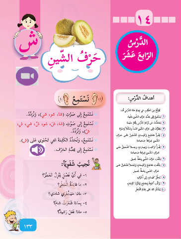 َن ْس َت ِم ُعَ ،ونُ َح ِّد ُد ال َك ِل َم َة التي َت ْح َتوي َعلى )ش(. َ ٣ي َت َع َّر َف إلى َح ْر ِف ال ّشي ِن ا ْسماً و َش ْكلاً َو َص ْوتا.