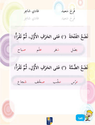 فادي شا ِعر َف ِر َح َسعيد فادي شا ِعر َف ِر َح َسعيد َن َض ُع ال َف ْت َح َة ) َ( َعلى ال َح ْر ِف الأَ َّو ِل ،ثُ َّم َن ْق َرأُ: َن َض ُع ال َّض َّم َة ) ُ( َعلى ال َح ْر ِف الأَ َّو ِل ،ثُ َّم َن ْق َرأُ: ١٥٢