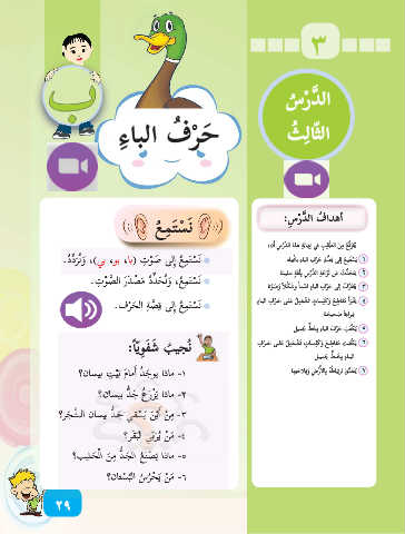 نُجي ُب َش َف ِو ّي ًا: َ ٣ي َت َع َّر َف إلى َح ْر ِف البا ِء ا ْسماً و َش ْكلاً َو َص ْوتا.