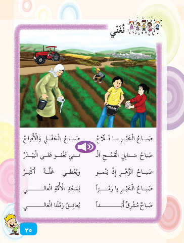 َصبـــا ُح ا ْل َح ْقـــ ِل َوا ْلأَفرا ْح َصبـــا ُح الْ َخ ْيـــ ِر يـــا َفـــ ّلا ْح