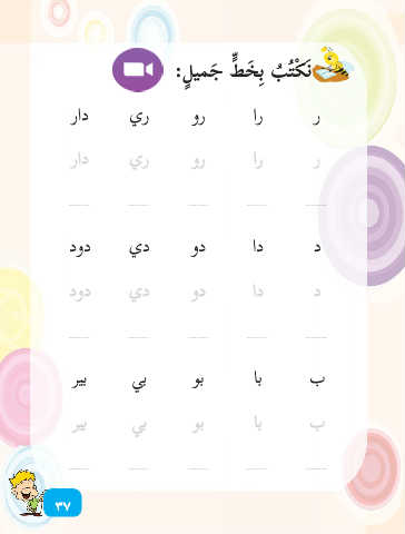 َن ْك ُت ُب ِب َخ ٍّط َجمي ٍل: ر را رو ري دار ر را رو ري دار د دا دو دي دود د دا دو دي دود ب با بو بي بير ب با بو بي بير ٣٧