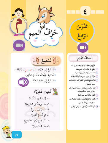 نَ ْس َت ِم ُع إِلى َص ْو ِت )ما ،مو ،مي(َ ،ونُ َر ِّد ُد. ُي َت َوقَّ ُع ِم َن الطّالِ ِب في نِها َي ِة هذا ال ّد ْر ِس َأن:
