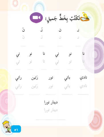 َن ْك ُت ُب ِب َخ ٍّط َجمي ٍل: نـ ن نَـ َن نـ ن نَـ َن نا نو ني نا نو ني نا نو ني نا نو ني نادي باني نور َرنين راني نادي باني نور َرنين راني دينار نورا دينار نورا ٥١