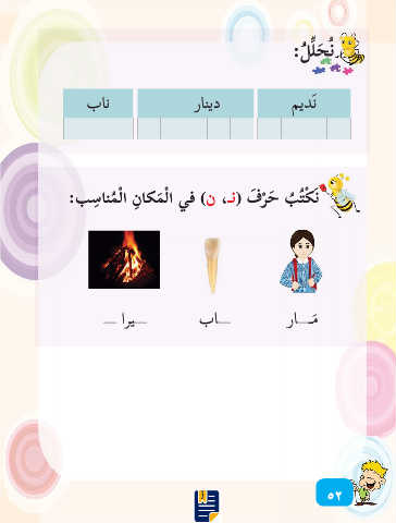 نُ َح ِّل ُل: نَديم دينار ناب َن ْك ُت ُب َح ْر َف )نـ ،ن( في ا ْل َمكا ِن ا ْل ُمنا ِسب: ــــاب ــــيرا ــــ َمـــــار ٥٢