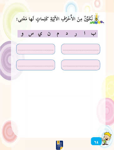 نُ َك ِّو ُن ِم َن الأَ ْح ُر ِف الآتِ َي ِة َك ِلما ٍت َلها َم ْعنى: ب ا ر د م ن يس و ٦٤