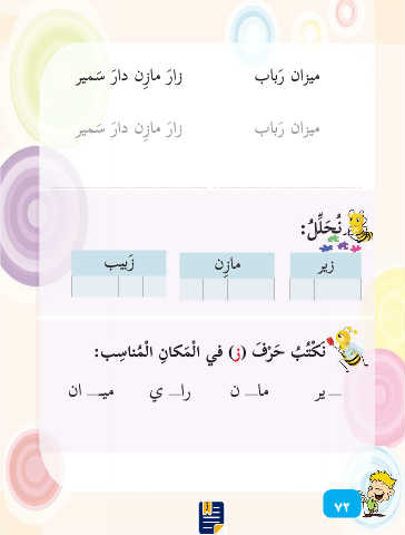 زا َر ما ِزن دا َر َسمير ميزان َرباب زا َر ما ِزن دا َر َسمير ميزان َرباب نُ َح ِّل ُل: زير ما ِزن َزبيب َن ْك ُت ُب َح ْر َف )ز( في ا ْل َمكا ِن ا ْل ُمنا ِسب: ــــ ير ماــــ ن راــــ ي ميـــــ ان ٧٢
