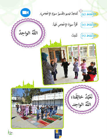 .)ِصالخِإ�ل� ةروس ريسفَت( ويديف ُدهاشُن )٤( طاشَن ْ ِ ِ ْ َ ُ ْ ْ َ .ًابيغ ِصالخِإ�ل� َةروس أ�رقأ� )٥( طاشَن َ ْ َ ِ ُدح�ول� ُهّلل� ِ :ُدشْنُن )٦( طاشَن ِ َ ؛انقلاخ ُدبْعَن ُ ِ دح�ول� ُهّلل� ٢٥ ٢٤