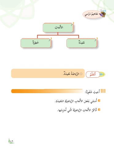 يسرَد ميهافم َ ْ ُ ْأ باعل�ل� ُ ِ ةرط َ خ ةَديفم ُ َ ُ .ةَديفم ة َ ضايرل� مَّلعَتأ� ُ ُ َ ِّ َ َ :ًاّيِوفش بيجأ� ُ ِ ْأ ِ ِ .ةَديفمل� ةيضايرل� ِ باعل�ل� ضْعَب يمسأ� ُ ّ َ َّ ِّ َ ْ ْأ َ ِ .اهسِرامأ� يتَّل� ةيضايرل� باعل�ل� رُكذأ� ُ َّ َ ِّ ُ ٥٩ ٥٨