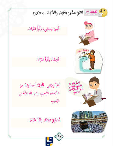 :ةوالِّتل� ب�دآ� مَّلعَتأ�و ،ةيت�ل� رو ُّ صل� لَّمأاَتأ� :٢ طاشَن
