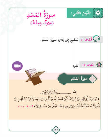 ِ دسمل� ُةروس :يناّثل� سرَّدل� ٢ ْ َ َ َ ُ ْ ِ ِ ُُُُُُ َ ُُُُُُ )ظفحو ،ةوالت( َ ِ ِ ِ ِ ِ .دسمل� ةروس ةوالت ىلِإ� عمَت ْ سَن :١ طاشَن ُ َ َ َ َ :ولْتَن :٢ طاشَن ِ دسمل� ُةروس َ َ َ ٥ - ١ :دسملا ٦٤