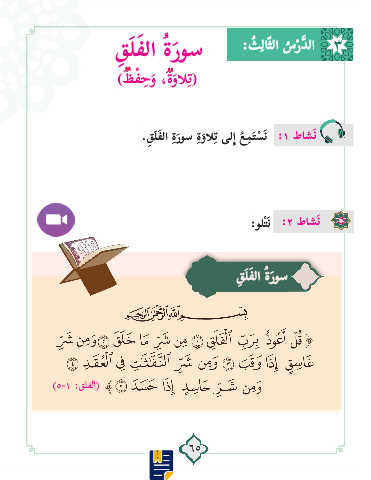 َ ِقَلفل� ُةروس : ُ ثلاّثل� سرَّدل� ٣ ِ َ ْ ُ ِ ْ ِ ُُُُُُ َ ُُُُُُ )ظفحو ،ةوالت( َ ِ َ ِ ِ ِ :١ طاشَن .ِقَلفل� ةروس ةوالت ىلِإ� عمَت ْ سَن ُ َ َ :ولْتَن :٢ طاشَن َ ِقَلفل� ُةروس َ )٥-١ :قلفلا( ٦٥