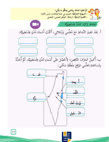 �أَ .ب ْع َد ت َنفي ِذ ال َّنشا ِط َم َع ُم َعلِّمي َو ُز َملائي� ،أ ْك ُت ُب �أ ْسما َء ُم ُد ٍن ِف َل ْسطي ِن َّية: