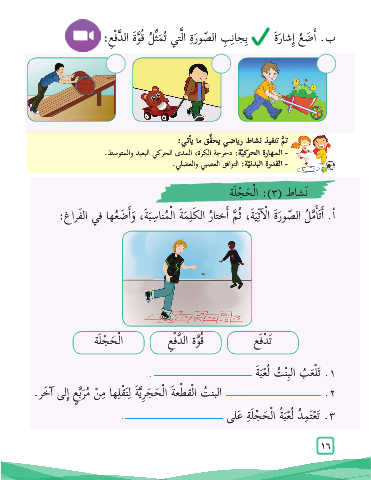 ب� .أ َض ُع� إِشا َر َة بِجانِ ِب ال ّصو َر ِة الَّتيُ ت َمثِّ ُلُ ق َّو َة ال َّد ْف ِع: