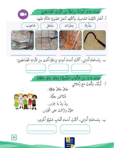 َنشاط ( :)٥أ�دوا ٌت ِزراع َّي ٌة ِم َن ال ُّترا ِث الْ ِف َل ْسطي ِن ّي