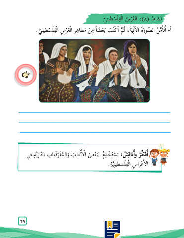 ا ْل ِف َل ْسطين ّي. الْ ُع ْر ِس َمظا ِهر ِم ْن نَشاط ( :)٨ال ُع ْر ُس الْ ِف َل ْسطين ّي أ�-