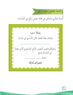 �أشار ُك ُمعلِّمي و ُزملائي في �إِقا َم ِة َم ْع ِر ٍض ُتراثِ ٍّي في ا ْل َم ْد َر َسة.