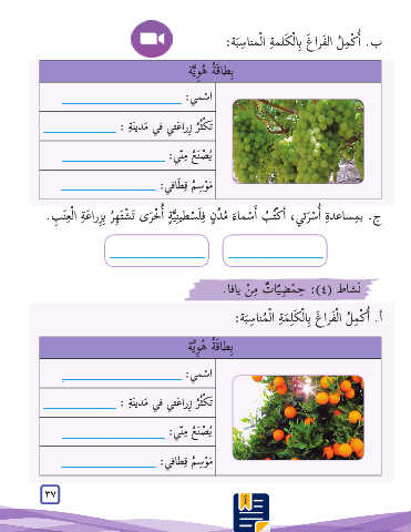 ج .ب ِمساعد ِة �أ ْس َرتي� ،أ ْك ُت ُب أ� ْسما َء ُم ُد ٍن ِف َل ْسطي ِن َّي ٍة أ� ْخ َرى َت ْش َت ِه ُر بِ ِزرا َع ِة ا ْل ِع َن ِب.