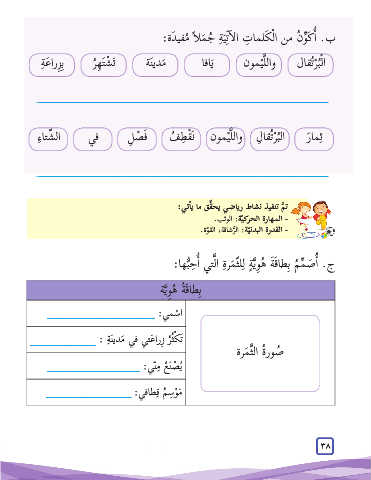 ج .أ� َص ِّم ُم بِطا َق َة ُه ِو َّي ٍة لِلثّ َمر ِة الَّتي أ� ِح ُّبها: