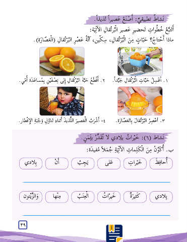 .3أ� ْع ِص ُر ال ُب ْرتُقا َل بِال َع ّصا َرة -4 .أ� ْش َر ُب الْ َعصي َر اللَّذي َذ أ�ثنا َء َتنا ُو ِل َو ْج َب ِة ال إِ� ْفطار.
