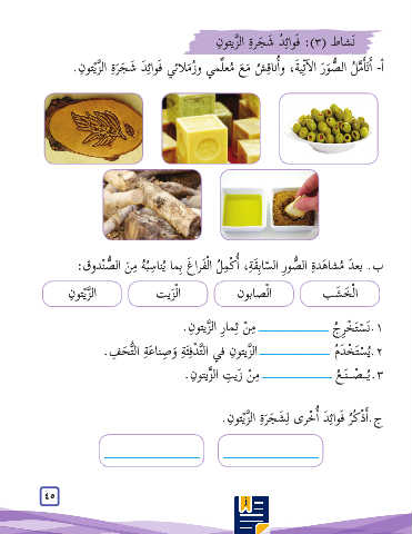 �أ -أ� َت�أ َّم ُل ال ُّص َو َر ال�آتِي َة ،و�أنا ِق ُش َم َع ُمعلِّمي و ُز َملائي َفوائِ َد َش َج َر ِة ال َّز ْيتو ِن.