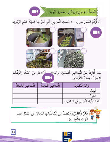 �أ� .أ َر ِّق ُم ال ُّصو َر من (َ )4-1حس َب الْمرا ِح ِل الَّتي َت ُم ُّر بِ َها َع َم ِل َّي ُة َع ْص ِر ال َّز ْيتو ِن.