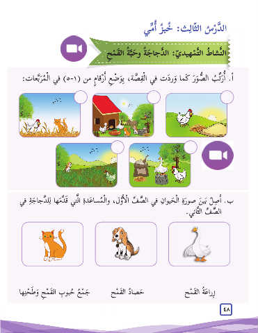 ب .أ�ال ِصَّص ُل ِّ َبفياَلنثَّانصيوَ.ر ِة الْ َحيوا ِن في ال َّص ِّف ا ْل�أ َّول ،وا ْل ُمسا َعد ِة الَّتي َق َّد َمها لِل َّدجا َج ِة في