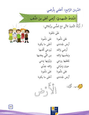 أ�� .أ َر ِّد ُد ال َّنشي َد ال�آتي َم َع ُمعلِّمي و ُز َملائي: