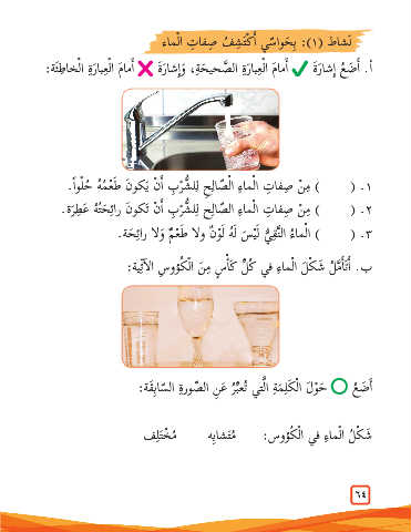 َنشاط ( :)١بِ َحوا ّسي أ� ْك َت ِش ُف ِصفا ِت ا ْلماء