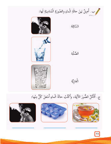 ج .أ� َت�أ َّم ُل ال ُّصو َر ال�آتِ َية ،و�أ ْك ُت ُب حا َل َة ا ْلما ِء أ� ْسف َل كُ ٍّل ِم ْنها: