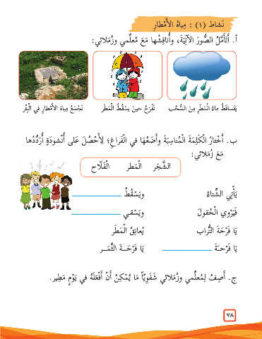 َي َتسا َق ُط ما ُء ا ْل َم َط ِر ِم َن ال ُّس ُحب نَ ْف َر ُح حي َن ي ْس ُق ُط ا ْل َم َطر نَ ْج َم ُع ِميا َه ال�أ ْمطا ِر في الْ ِب ْئر