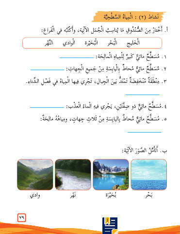 ُ .١م َس َّط ٌح مائ ٌّي َكبي ٌر لِ ْل ِميا ِه ا ْلمالِ َحة :ـــــــــــــــــــــــــــــــــــــــــــــــــــــــ
