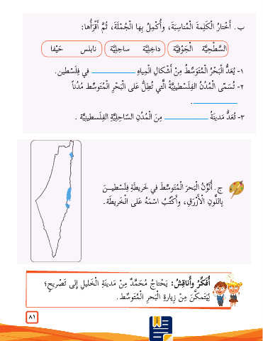 ُ -٢ت َس ّمى ا ْل ُم ُد ُن ال ِف َل ْسطي ِن َّي ُة الَّتي تُ ِط ُّل َعلى ا ْل َب ْح ِر ا ْل ُم َتو ِّسط ُم ُدناً