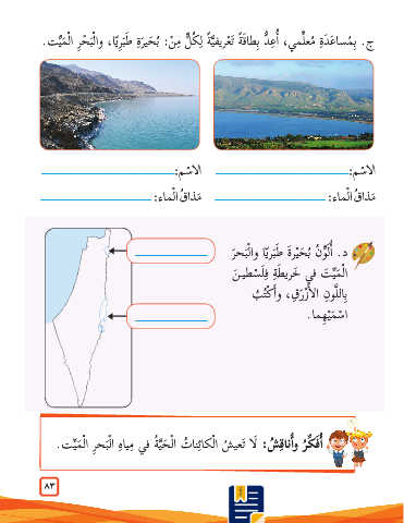 ج .بِ ُمسا َع َد ِة ُمعلِّمي ،أ� ِع ُّد بِطا َق ًة َت ْعريف َّي ًة لِ ُك ٍّل ِم ْنُ :ب َحي َر ِة َط َب ِريّا ،والْ َب ْح ِر ا ْل َم ِّيت.