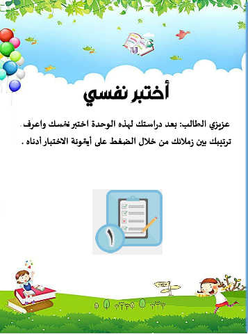 فرعاو       كسفن       ربتخا     ةدحولا هذهل           كتسارد دعب            :بلاطلا يزيزع