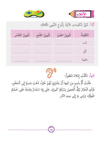 :ةَثالَّثل� ِنيوْنَّتل� ع�وْنأاِب َةيتآال� تاملَكْل� نوَنُن :الوأ�