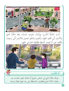 .ةَليمجو ًةَفيظَن مِهيح ةَئيب ىلع ةظَفاحملل ؛نوعوطَتيو يحلا ُناكس ُنواعَتي -