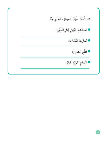 ِ ِ ُ َ َ :َدْنع ِرذحلاو ةطيحلا َقرط بُتْكأا -3 َ َ ُ ُ ِ ِ ِ َّ :يهطلا ِزاغل ِرابكلا ِمادْختسا ْ ْ ِ :ةحابسلا ةسرامم َ ُ َ ِّ َ ْ :عِراّشلا عطَق ِ ِ ِ :وجلا ةرارح عافترا ْ َ َ ِ ّ َ 14