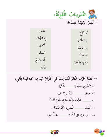 :يتأ�ي �ميف )ـَك ،ـِب ،ـل( غارفلا يف بس�نملا رجلا َ فرَح ع َ ضَن -٢