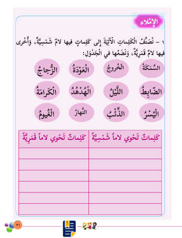 ىرخأاو ،ةيسمش ٌم�ل �هيف ت�ملَك ىلِإا ةيت�لا ت�ملَكلا فِّن َ صُن – ١