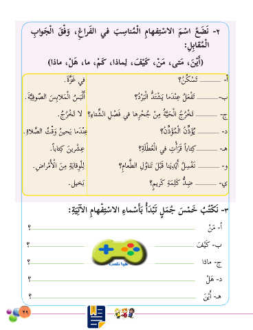 )اذ�م ،ْلَه ،�م ،ْمَك ،اذ�مل ،فيَك ،نم ،ىتم ،نْيأا(