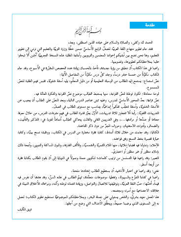 راعينا في كتابنا التن ّوع والسهولة ،وتغطية موضوعات متع ّددة ،ته ّم الطالب في هذه الس ّن ،وقد هدفنا أان نغرس فيه