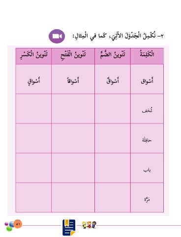 ِ ِ ْ ِ آ ِ ْ ْ :ل�ثملا يف �مَك ،يت�لا َلوْدجلا لمكُن –٢ َ َ ُ َ ْ َ ْ ةملَكلا ِر ْ سَكلا نيوْنَت حْتفلا نيوْنَت م َّ ضلا نيوْنَت ُ ِ ْ ِّ َ ُ ُ ُ ِ ٌ ٍ قاوسأا ً�قاوسأا قاوسأا قاوسأا ْ ْ ْ ْ فحُت َ ِ ةَلفاح باب ةرم َّ َ ٥١