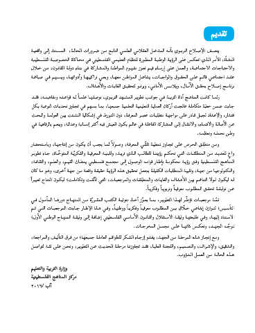 �لمناهـج �لفلسـطينية وفـق رؤيـة محكومـة ب إاطـار قو�مـه �لوصـول �إلـى مجتمـع فلسـطيني يمتلـك �لقيـم ،و�لعلـم ،و�لثقافـة،
