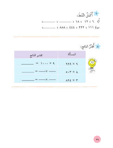 َ ُ ْ أ :طمَّنلا لمكا 7 َ َ ، ، ، 18 ، 12 ، 6 )ا أ ، ، 888 ، 444 ، 222 ، 111 )ب :جتانلا رّدقأا 8 ُ جتانلا ريدقت ةلأاسملا = 1000 × 9 999 × 9 = × 503 × 8 = × 894 × 3 54
