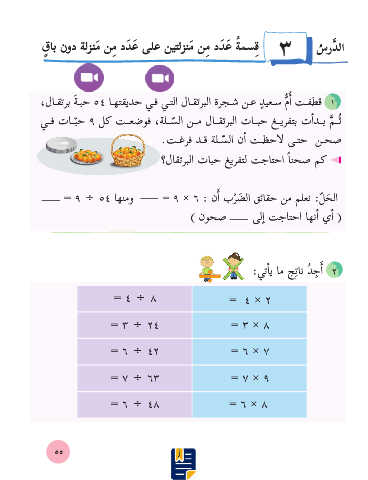 = 9 ÷ 54 اهنمو = 9 × 6 : نأا بر َ ضلا قئاقح نم ملعن :ّلحلا