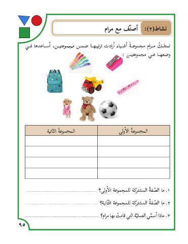 تمتلــ ُك مــرام مجموعــ َة �أشــياء �أرادت ترتيبهــا ضمــن مجموعتيــن� ،أســاعدها فــي