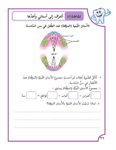 ال�أسنان اللّبنية (المؤقتة) عند ال ّطفل في سن ال ّسادسة